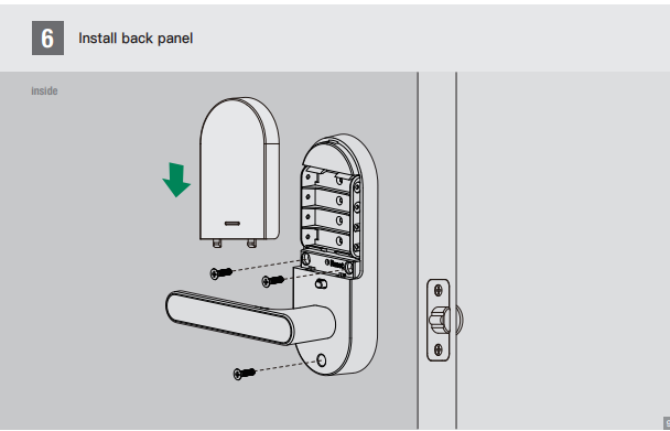 - In the backup screw bag that came with lock, there is 1 screw that can be used to secure that back panel to the mounting plate as a temporary measure.